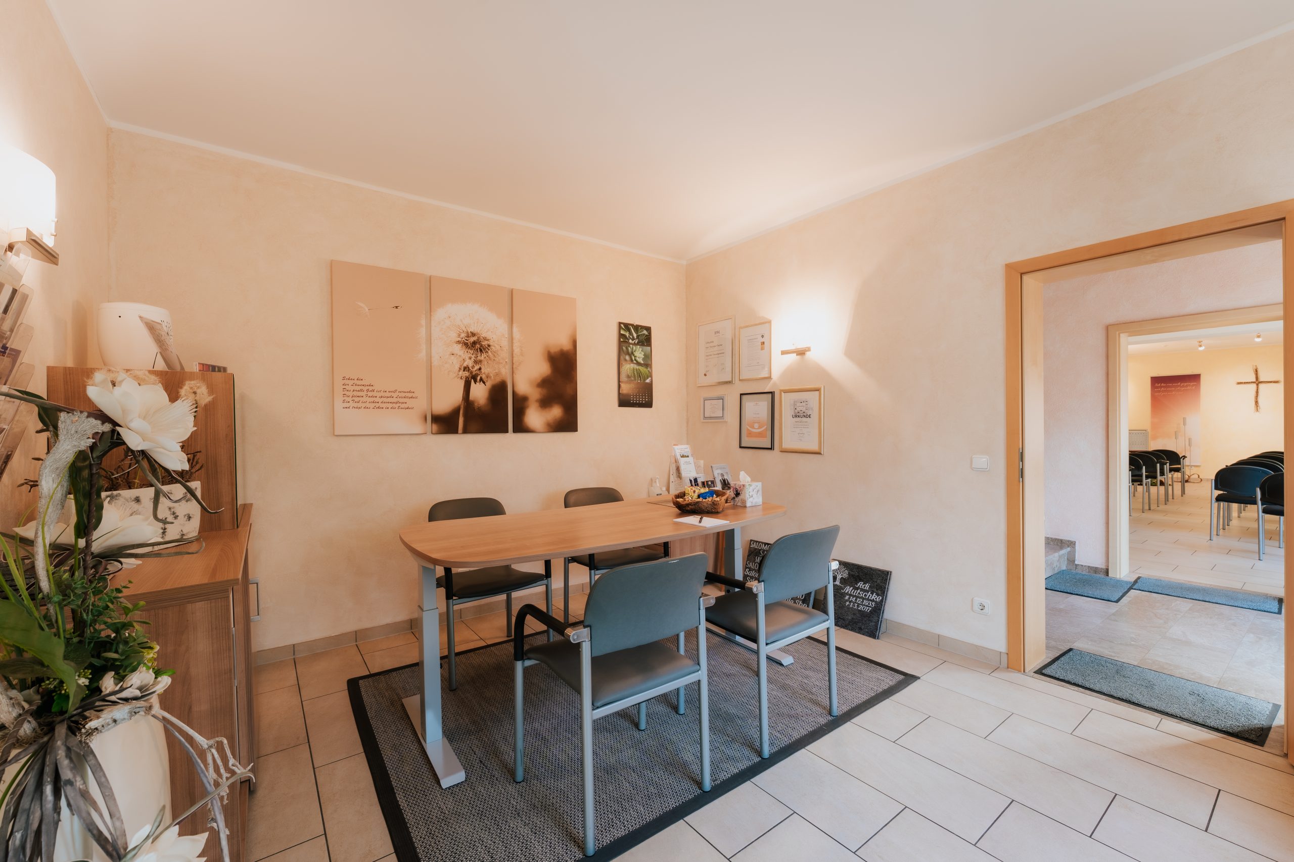 In unseren Abschiedsräumen im Bestattungshaus Fischer schaffen wir eine würdevolle und beruhigende Atmosphäre, in der sich Angehörige in aller Ruhe verabschieden können.